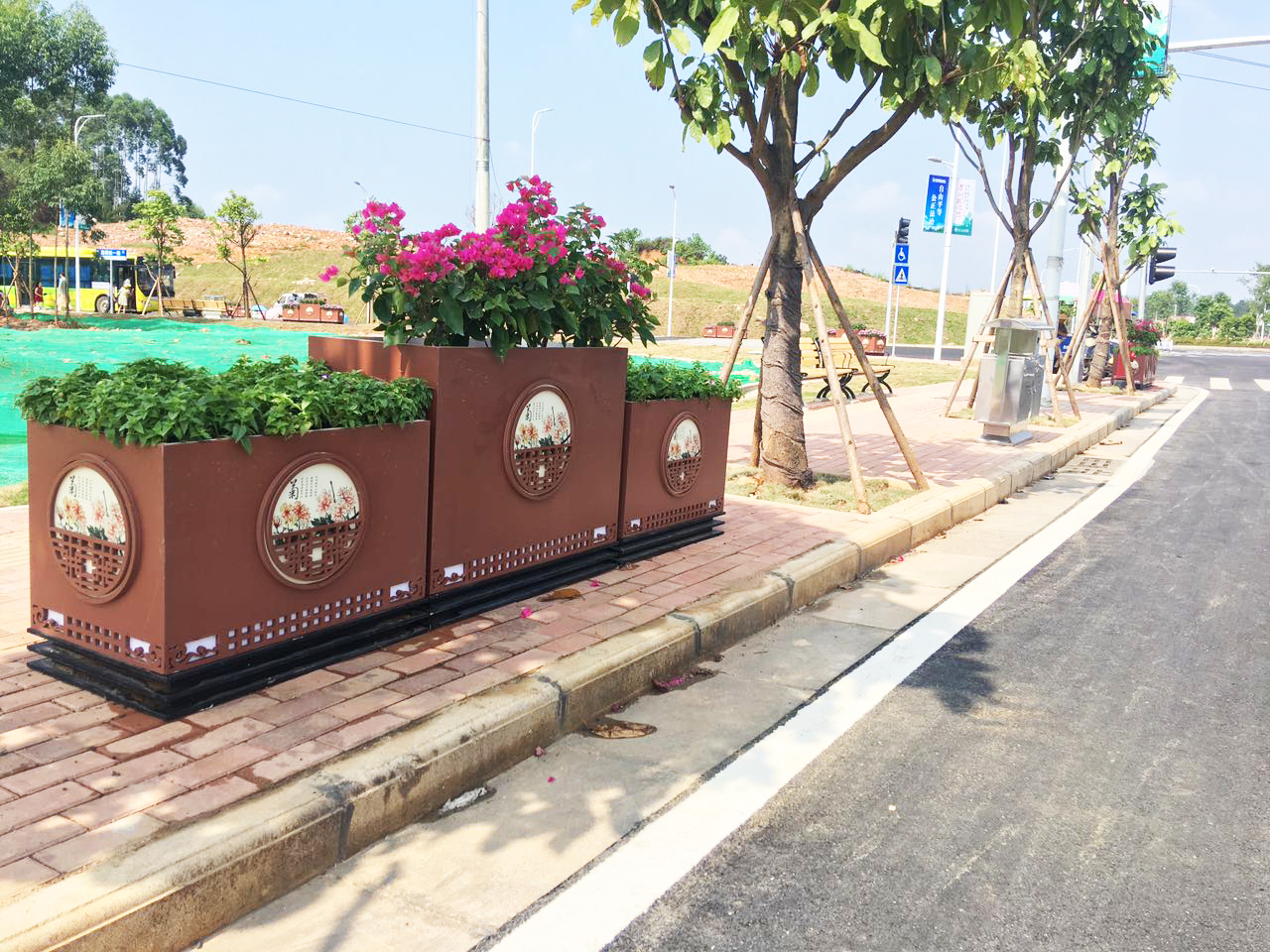 組合花箱有標(biāo)準(zhǔn)尺寸,但標(biāo)準(zhǔn)尺寸并不適合每一條街道。因此在實(shí)際生產(chǎn)中,廠家會根據(jù)場景的特點(diǎn),調(diào)整尺寸,使得花箱的尺寸適應(yīng)場景。實(shí)際上,街道上樹與樹之間的間距就不同,比較好的就是量好尺寸定制。