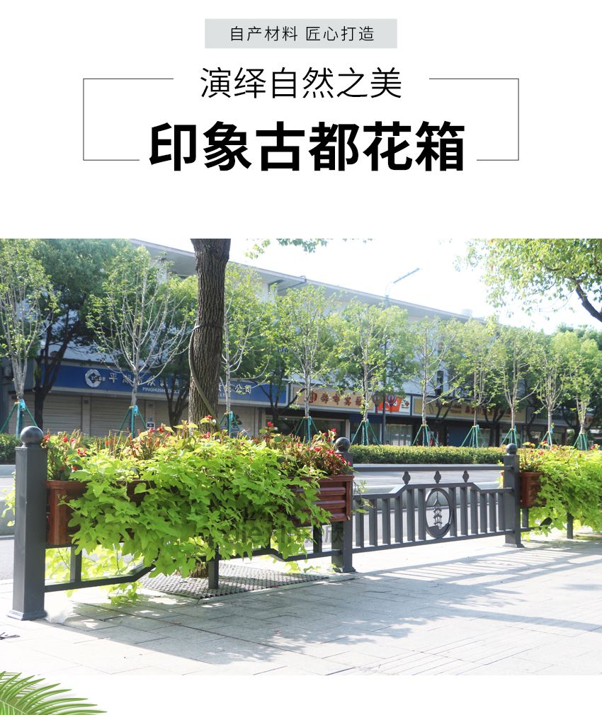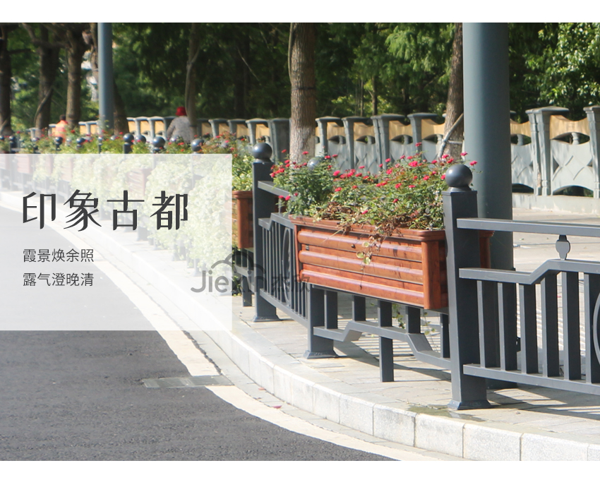 這款花箱護欄在設計元素中添加了地方特色,古老的寶塔凸顯出城市的文化底蘊。