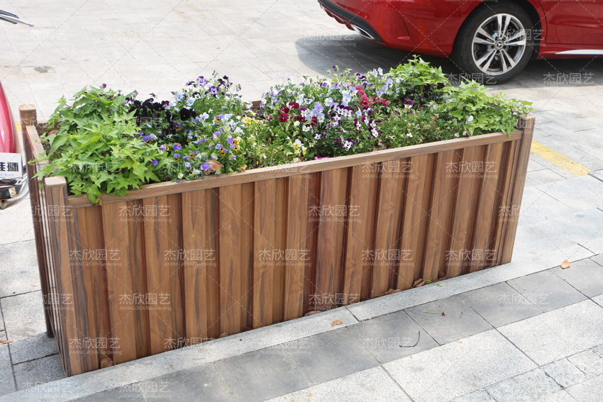 對于市政來說,防腐木花箱不太經(jīng)用。市政花箱規(guī)格都很大,沒有辦法移動,所以常年暴露在露天環(huán)境中,非常容易磨損和破壞。一旦破損了,就很影響市容市貌。所以在市政花箱的選擇上,防腐木并不適合。