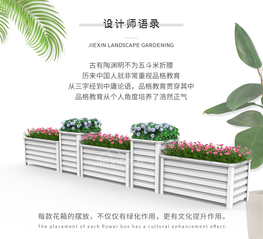 白色組合花箱更是組合花箱中的佼佼者,白色花箱具有鮮明的景觀提亮效果。