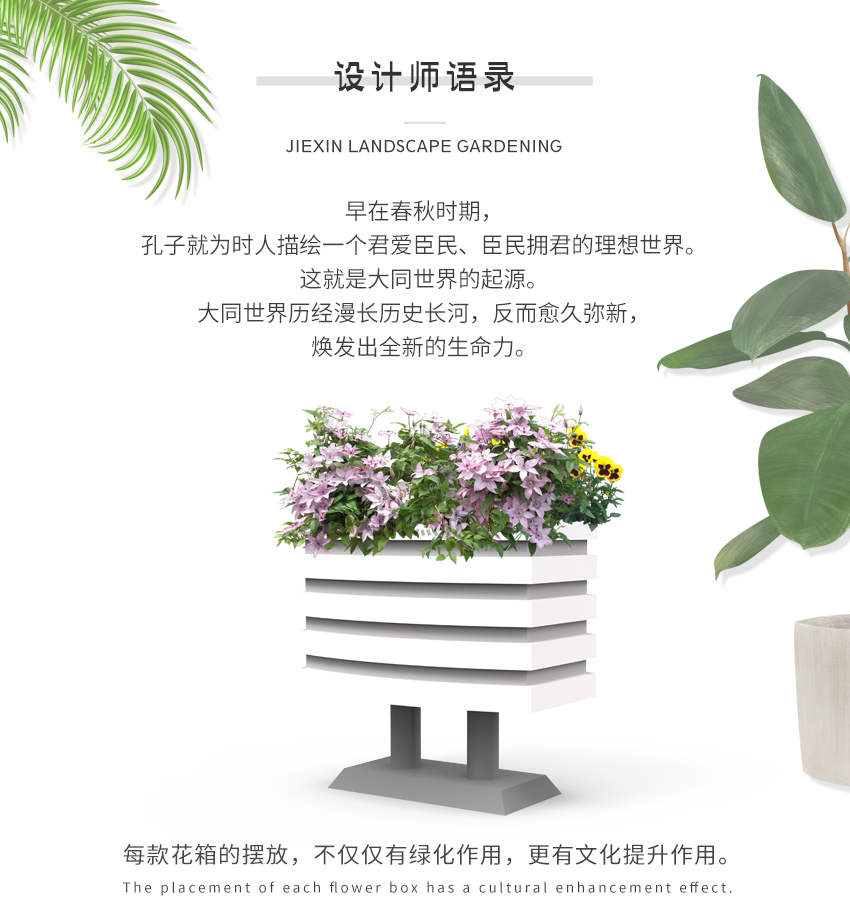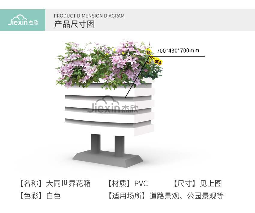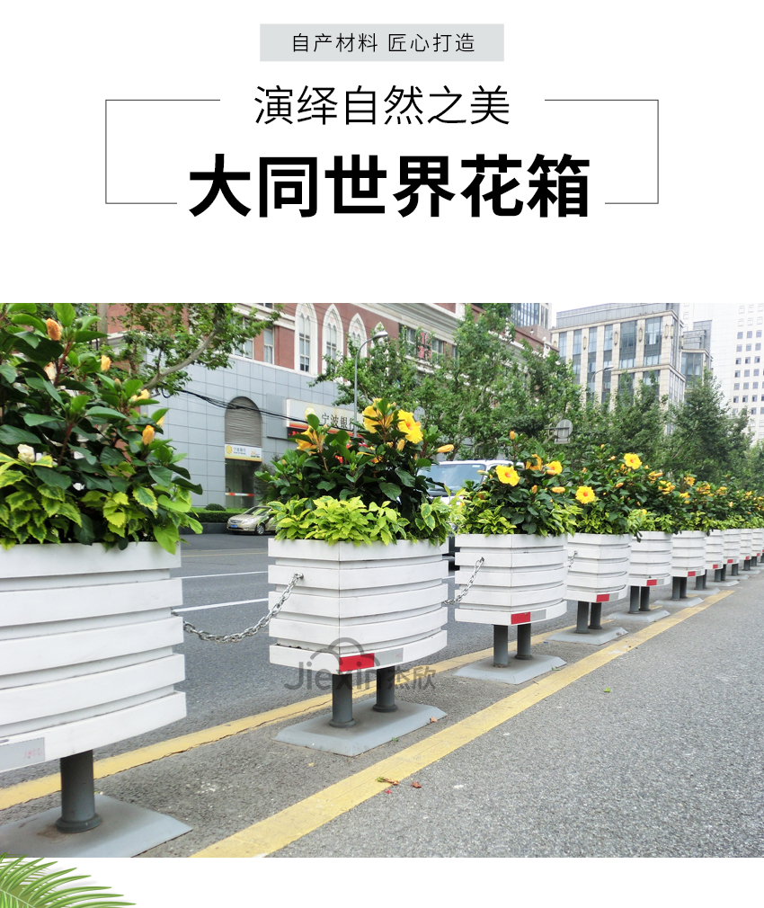 產(chǎn)品摘要: 造型簡約的PVC花箱,在道路上也是一道優(yōu)美的風(fēng)景線花箱與花箱的連接,形成了自然的隔離帶既能適用在道路,還可以用在街道上,適應(yīng)性廣泛白色花箱,能夠有效提亮街道街景
