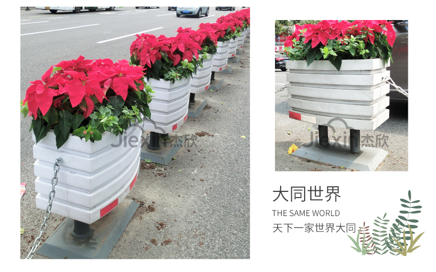 造型簡約的PVC花箱,在道路上也是一道優(yōu)美的風(fēng)景線