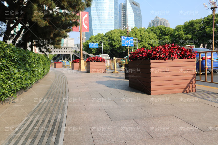 城市街道上的花箱隔斷,一般選取組合花箱或單個(gè)花箱形式。