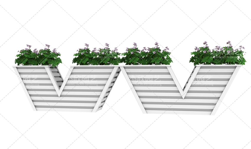 字母W的構(gòu)想,新穎奇特,更加有現(xiàn)代氣息。筆直的線條、曲折的走向,增加了不確定性,打破了鋁合金花箱的規(guī)整感,更有藝術(shù)美感。