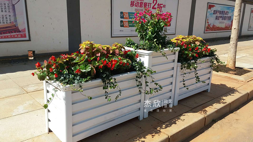 鋁合金花箱是市面上zui常見的花箱種類,不管是公園、廣場還是街道都能看到它熟悉的身影。除了鋁合金花箱,花箱種類還有PVC花箱、鈑金花箱、防腐木花箱。