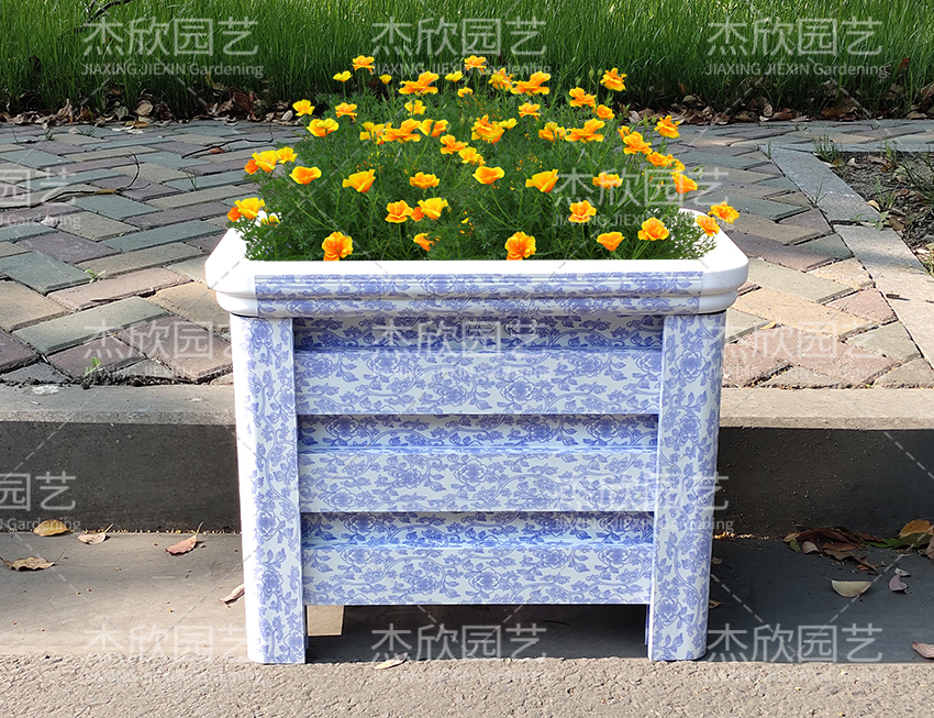 第一個(gè)是青花瓷花箱。這款花箱沒有其他特別之處,青花瓷就是它的亮點(diǎn)。鋁合金花箱的顏色集中在紅白黃,青花瓷是非常少見。青花瓷覆膜的鋁合金花箱,看起來就擺脫了木紋的敦厚感,呈現(xiàn)出非常優(yōu)雅高級(jí)的氣息。