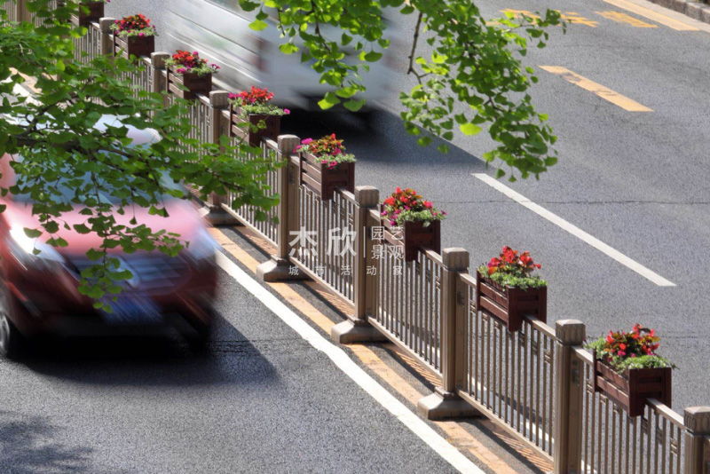 花箱護(hù)欄則可以用在隔離帶較窄的路段。花箱護(hù)欄以花箱和護(hù)欄組合形式呈現(xiàn),其中包括懸掛的花箱護(hù)欄,就更提高空間綠化率。