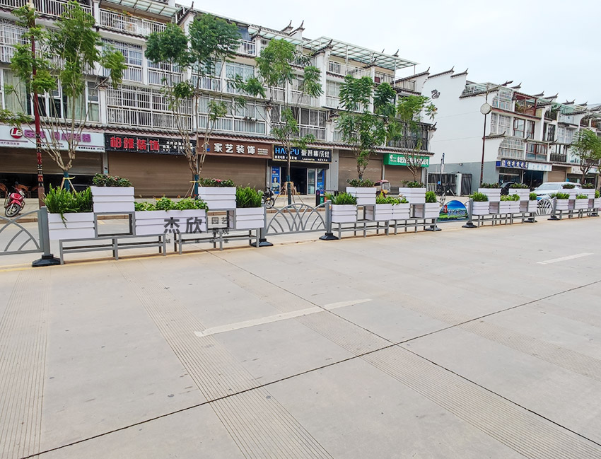 pvc品字形組合花箱護欄非常適合城市道路中央隔離帶、機非隔離帶。