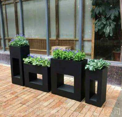 還有這些黑色異形花箱,也是不銹鋼板花箱