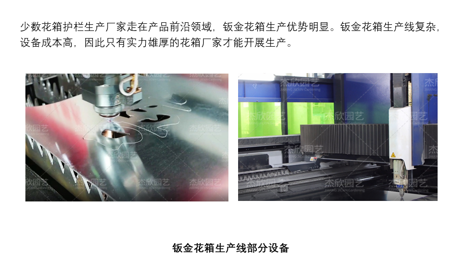 少數(shù)花箱護(hù)欄生產(chǎn)廠家走在產(chǎn)品前沿領(lǐng)域,鈑金花箱生產(chǎn)優(yōu)勢(shì)明顯。鈑金花箱生產(chǎn)線復(fù)雜,設(shè)備成本高,因此只有實(shí)力雄厚的花箱廠家才能開展生產(chǎn)。