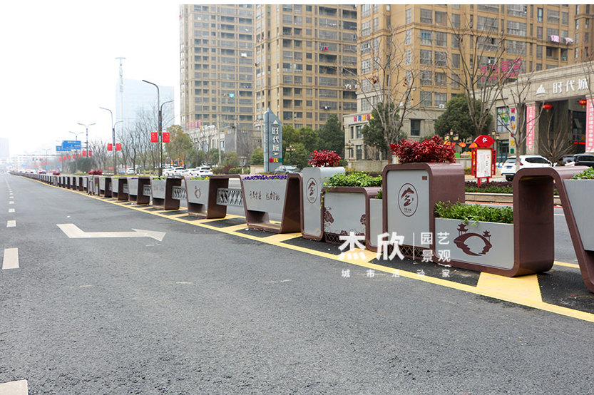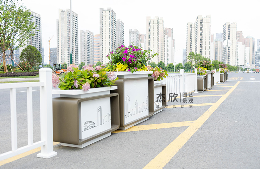 景觀花箱的含義可以定義為融于城市風景的花箱。花箱如果能和道路風景融合,給道路風景帶來美,那么就是景觀花箱。
