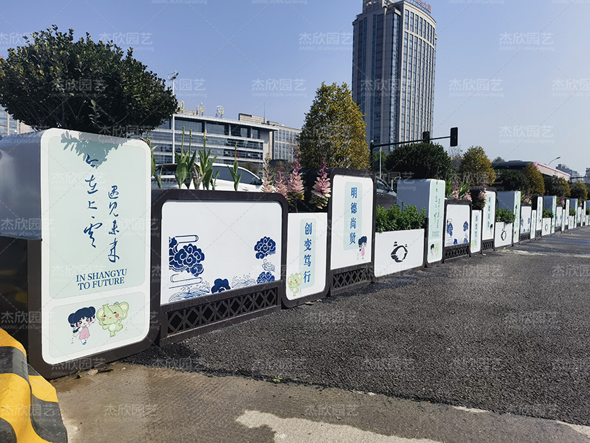 城市定制花箱可以依據(jù)需求,定制花箱面的圖案,體現(xiàn)城市特色風光。