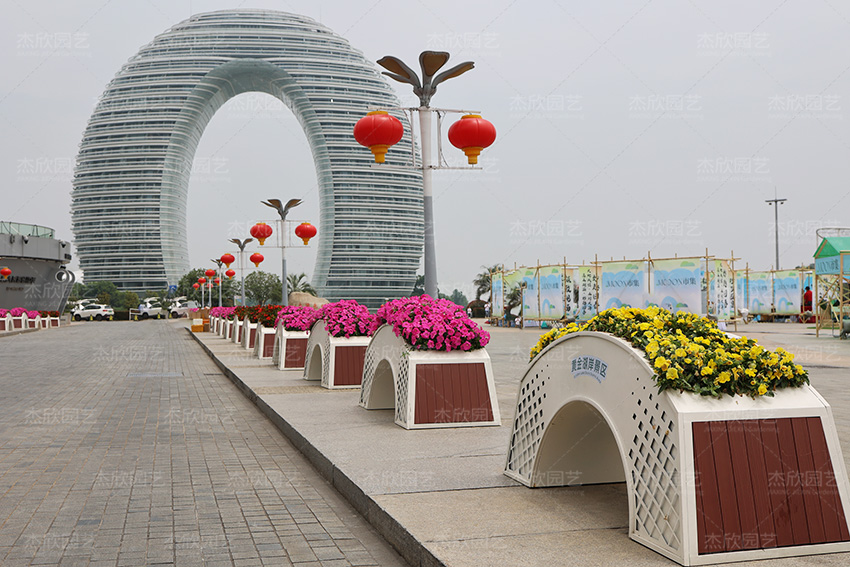 而此次的景觀花箱,正以月亮酒店為靈感來源,似月也似橋,連接起現(xiàn)代高樓與古老太湖的橋梁。