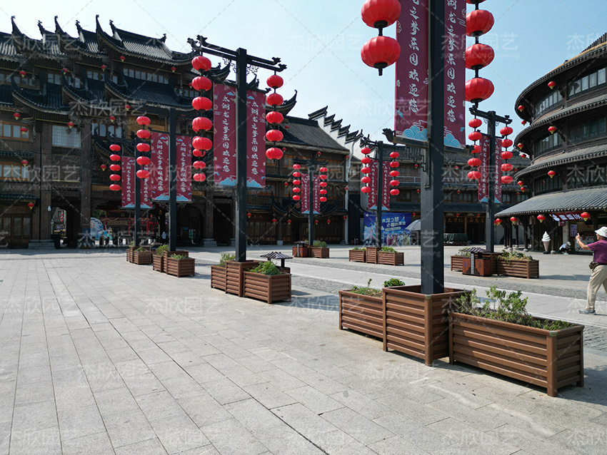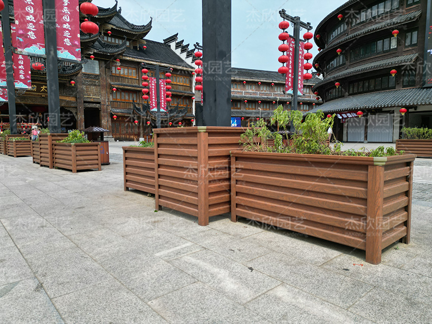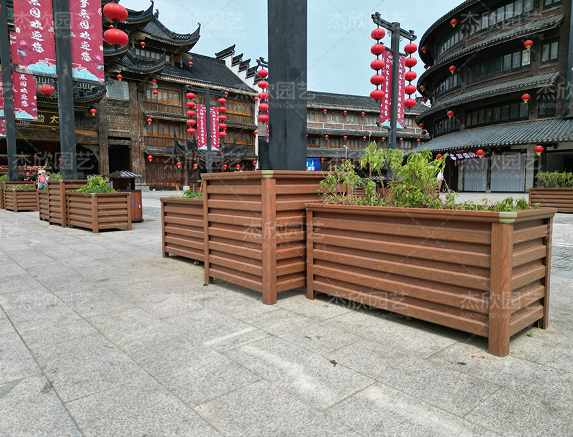 鋁合金花箱不僅適用于街道、商場,還適用于古鎮(zhèn)景點,尤其是黃檀木色花箱,與古鎮(zhèn)的風(fēng)景更為貼合。