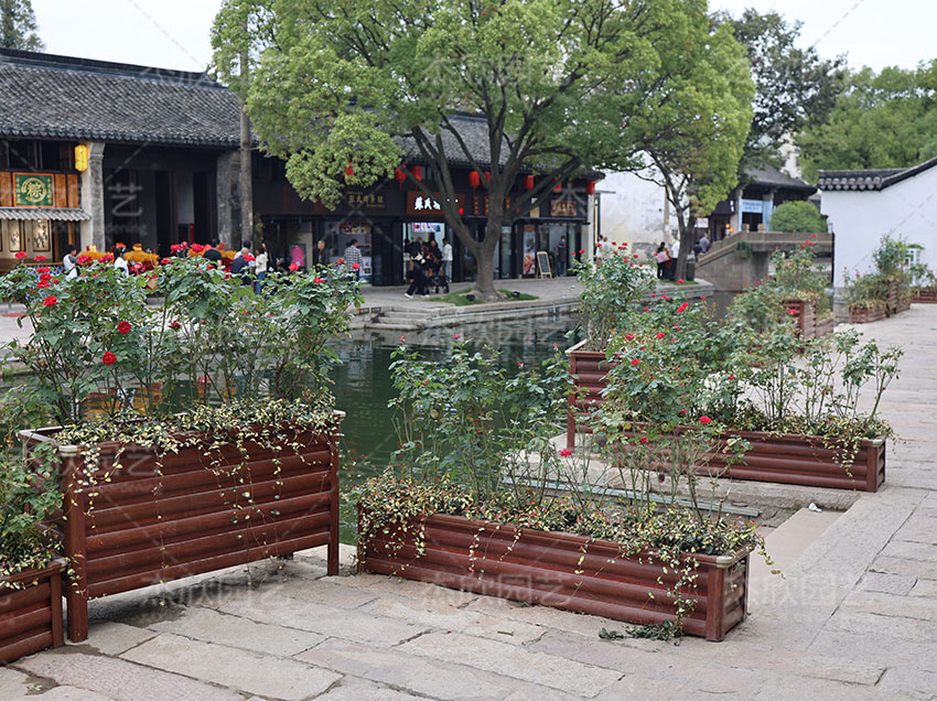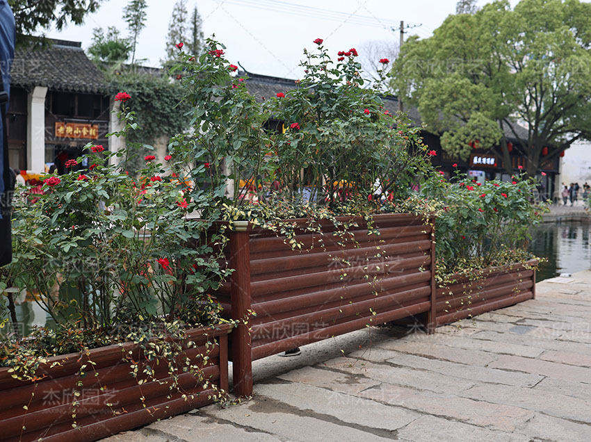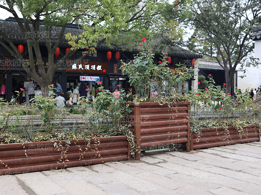 紅木色鋁合金花箱的使用更為廣泛,可使用于多個(gè)場(chǎng)景,提升景觀效果更明顯。