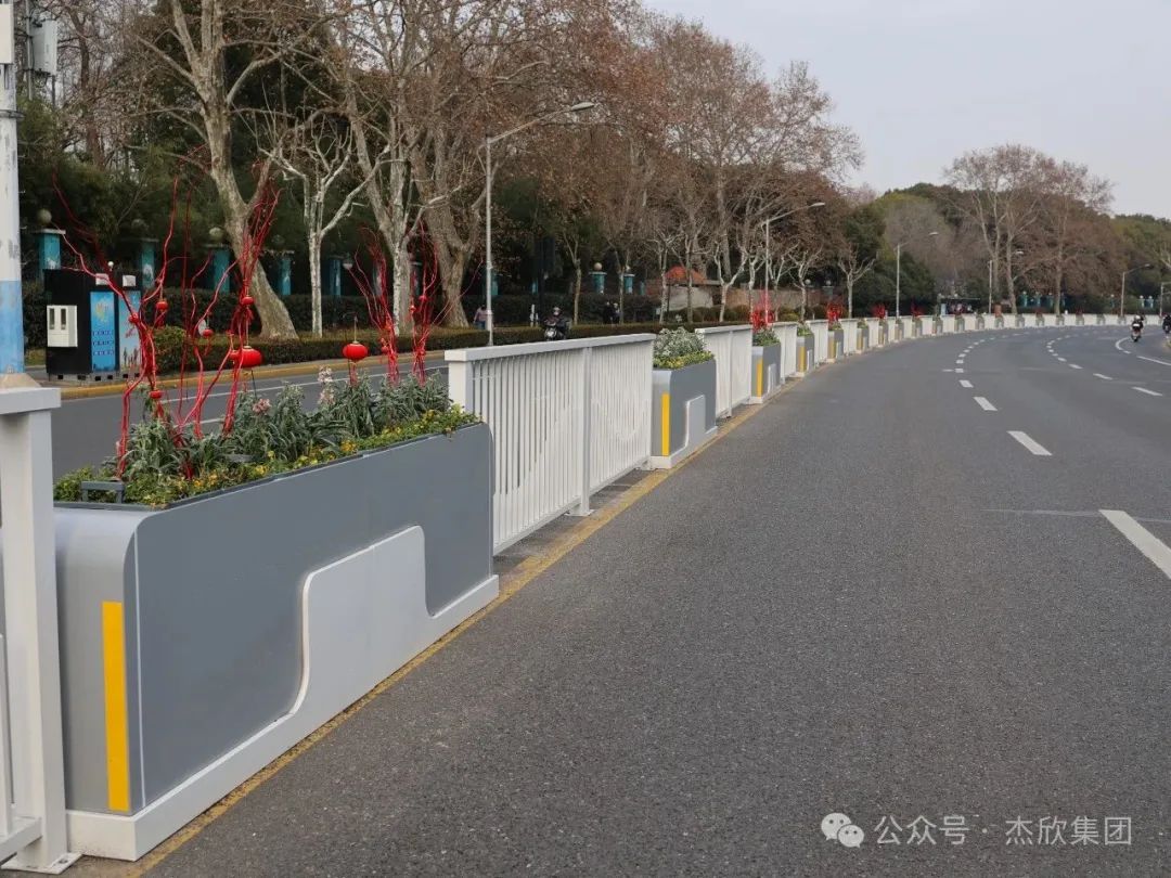 四季流轉(zhuǎn),美景常在。花箱護(hù)欄與套配花盆構(gòu)成了虹橋路的花卉景觀,相伴人們走過(guò)春夏秋冬。為迎接新春佳節(jié),還精心配制了新春掛墜,喜氣洋洋。