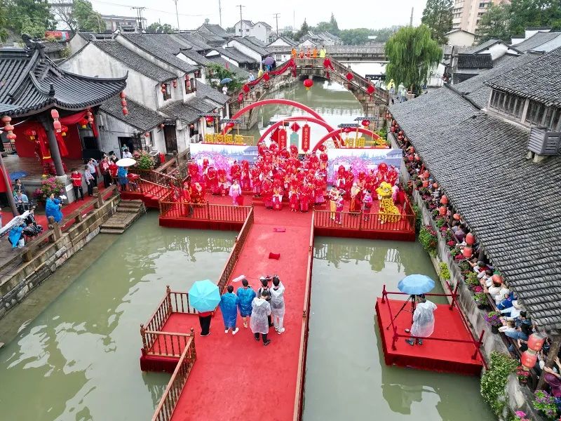 近日千年古鎮(zhèn)楓涇舉辦了第十七屆“吳根越角”楓涇水鄉(xiāng)婚典。作為2023上海旅游節(jié)的重大主題活動(dòng)之一,楓涇水鄉(xiāng)婚典結(jié)合古鎮(zhèn)特色和優(yōu)勢(shì),打造120米水上婚典T臺(tái),以傳承經(jīng)典、迭代破圈的方式煥新亮相。