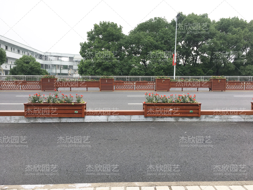 紅色木紋花箱,景觀效果好