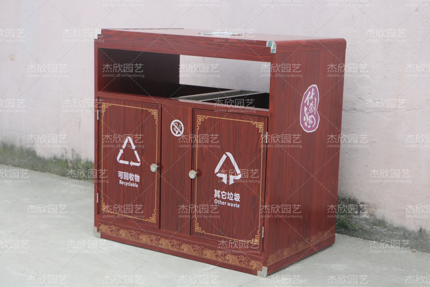 產(chǎn)品摘要: 這款垃圾箱周身都散發(fā)出古典的氣質紅橡木的色澤外觀,搭配工筆金邊勾勒出典雅的箱體簡潔明了的分區(qū),講究實用美觀的工藝可以搭配古典氣場的場景