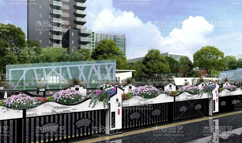 新中式仿徽波紋不銹鋼花箱鐵藝花箱鋁板花箱
