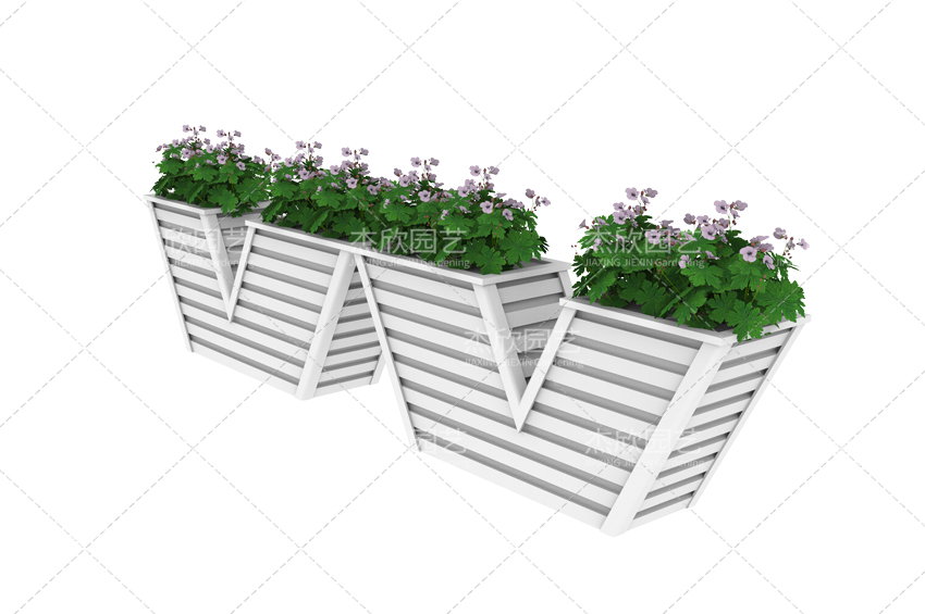 W花箱,和常規(guī)花箱相比,新穎別致、富有造型。看多了常規(guī)花箱,不妨一試。雖說新穎,但也與道路很合適。白色外觀清新自然,W型和諧耐看