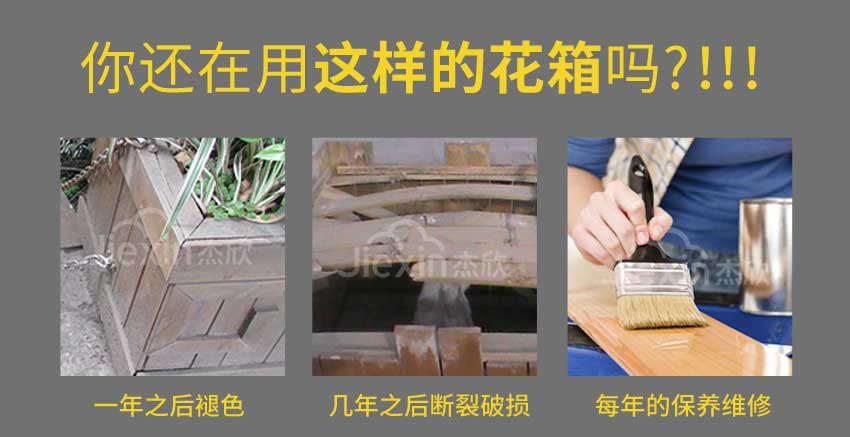 防腐木花箱,雖然造價(jià)成本較低,但是使用年限太短,一般使用一年以上就開裂變形,發(fā)霉變質(zhì),而且制作工期較長(zhǎng),耗時(shí)耗力,逐漸被一些新型花箱材料替代。