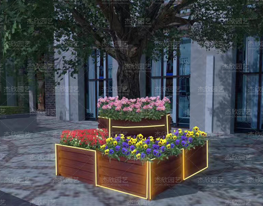 樹圍花箱,城市中很常見