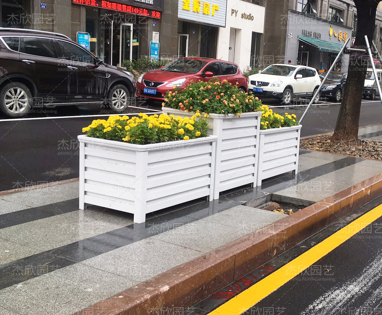 大家會(huì)發(fā)現(xiàn)戶外市政上用的防腐木花箱很多都已經(jīng)破損,有些是脹裂、有些折裂,其實(shí)已經(jīng)到了不能用的地步了。外部的漆也已經(jīng)掉光,非常影響市容。