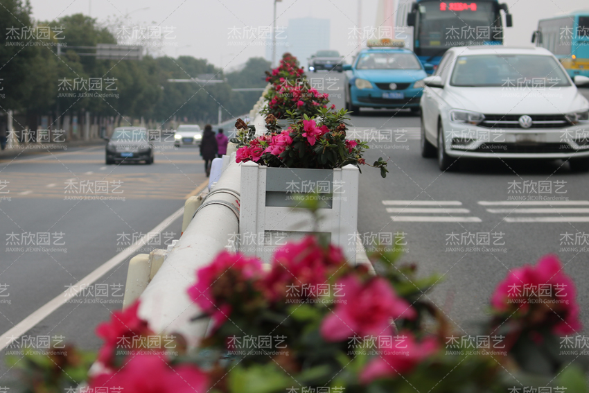橋梁中央隔離花箱主要為了隔離車(chē)道,同樣采用鋁合金材質(zhì),高強(qiáng)度防撞,紅木色花箱搭配綠植,景觀(guān)效果好。