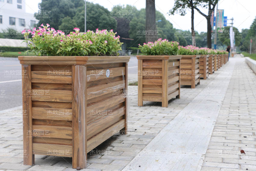 街道、公園、廣場這一類的花箱,使用鋁合金或PVC花箱都可以。鋁合金花箱的效果可以類比防腐木花箱,鋁合金花箱可以有木紋效果,外觀和防腐木花箱很像,不過在強度和硬度上,遠勝防腐木花箱。鋁合金花箱給人感覺比較清新自然。PVC花箱的優(yōu)勢在于材質(zhì)的柔韌性佳,PVC材質(zhì)可以雕刻,做出豐富多樣的造型。比較適合有景觀需求的場景。