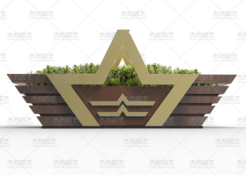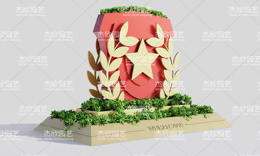 這款花箱線條硬朗,整體造型挺拔,符合軍人剛硬形象,體現(xiàn)軍旅文化,元素取自軍人臂章均有的麥穗、星星和臂章外型,與軍運(yùn)會主題相呼應(yīng)。