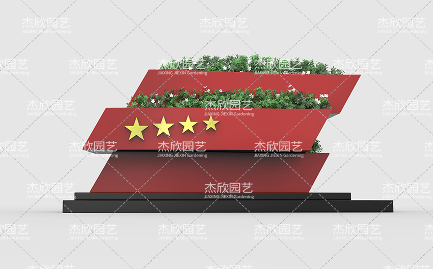 這款花箱將五角星的元素結(jié)構(gòu)重組,大氣方剛。兩側(cè)箱體猶如翅膀煽動徐徐上升,象征我國軍力強(qiáng)盛發(fā)展。