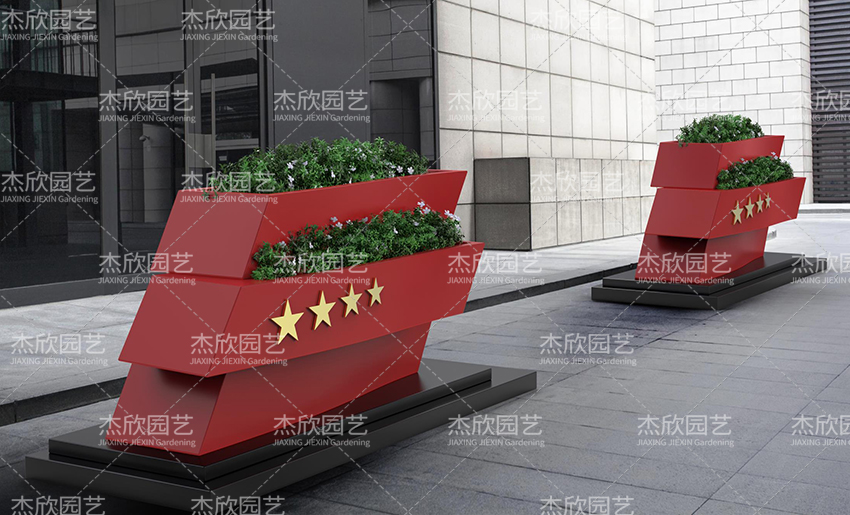 這款花箱大氣簡潔,將飄揚(yáng)的紅旗用幾何體表達(dá),造型感硬朗十足,整體造型設(shè)計表達(dá)了軍運(yùn)會現(xiàn)代化賽事的特性,體現(xiàn)我國軍事的熱血、剛強(qiáng)。