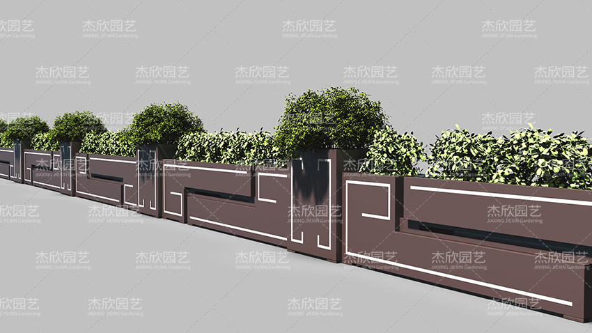 國風(fēng)回紋花箱將回紋元素運(yùn)用到道路花箱,傳承國風(fēng)文化。回紋自古以來,深受喜愛。歷經(jīng)千年流轉(zhuǎn),逐漸成為人文符號。關(guān)于回紋的研究很多,學(xué)家認(rèn)為:回紋是古人模仿自然中水的旋渦的產(chǎn)物。這個(gè)解釋符合古人意象化審美觀念。在民間,回紋更多被看作富貴不斷頭的一種紋樣。如今回紋樣式依然活躍在當(dāng)代設(shè)計(jì)中,但更多借回紋表現(xiàn)國風(fēng)文化。