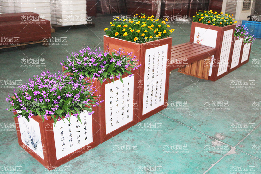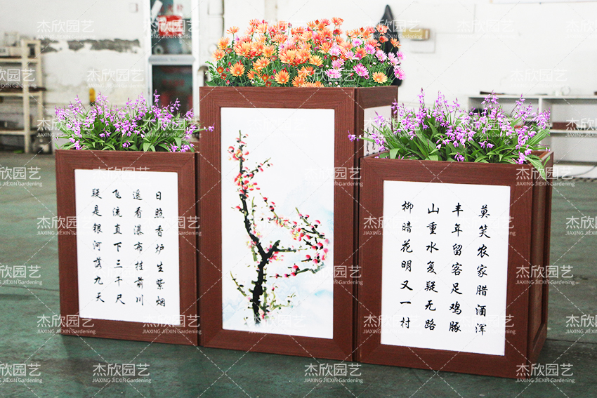 這款花箱的詩文可以定制,滿足不同場景的使用。花箱上的圖畫,不管臘月梅花、春日桃花、盛夏荷花、九月秋菊都可以選擇。花箱材料PVC材質(zhì),很耐用,箱體清洗便利,維護(hù)簡單。