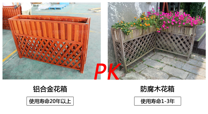 木紋鋁合金花箱與防腐木花箱同款對(duì)比: