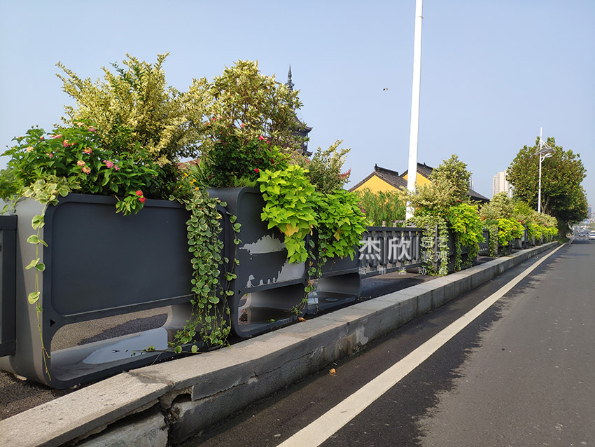 產(chǎn)品摘要: 花箱護(hù)欄的組合,既能起到隔離作用也能起到美化、保障視野開闊的效果花箱部分通過定制圖案,展現(xiàn)出城市風(fēng)采和時(shí)代精神中間的花箱圖案,是根據(jù)城市著名景點(diǎn)繪制兩邊的花箱圖案,是根據(jù)中國(guó)夢(mèng)主題繪制這款花箱融地方特色、時(shí)代精神、美觀為一體綜合提升城市道路景觀