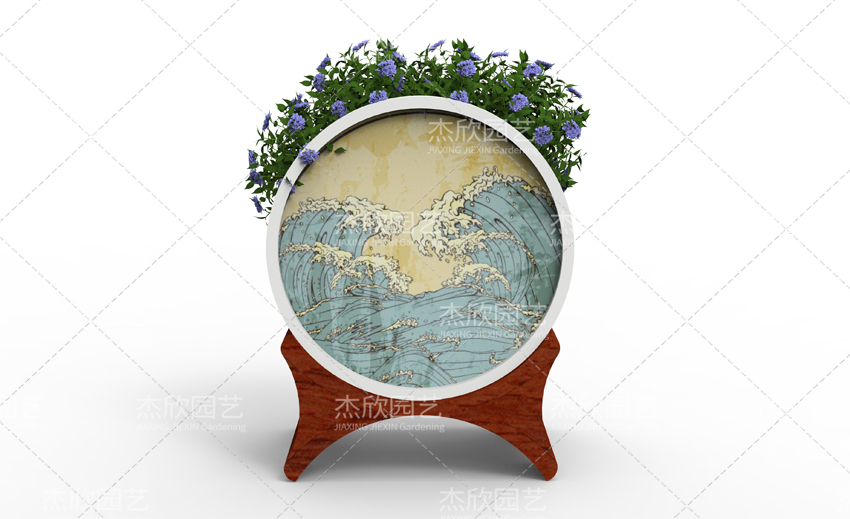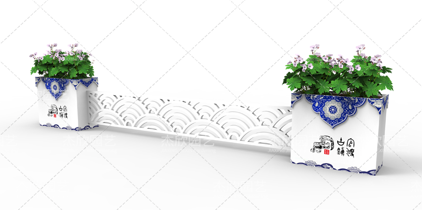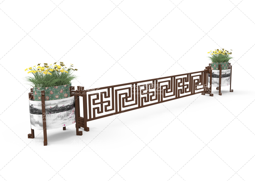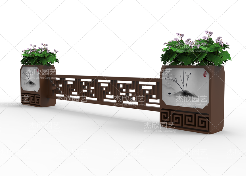 大鼓造型、古典紋樣構(gòu)成了花箱的古典風(fēng)格。水墨裝飾畫更將古典風(fēng)格發(fā)揮到唯美境界。國畫的濃淡、疏密,意境悠遠(yuǎn)。水墨印象花箱,還融入了繽紛的色彩,使得花箱整體美觀提升。