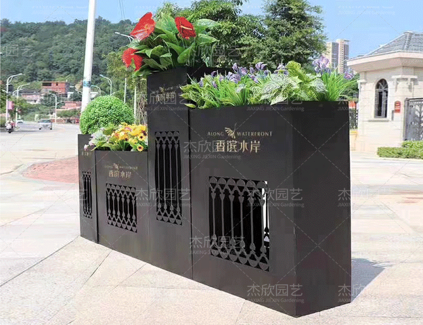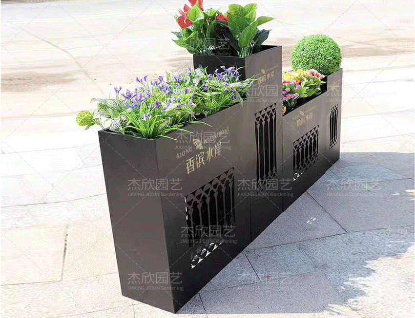 黑色不銹鋼花箱|鐵藝花箱|鋁板組合花箱高級定制款